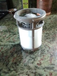 Some of our dishwashers have a filter that requires cleaning on a regular basis. Our Whirlpool has this filter which we clean monthly using a toothbrush and detergent. Consult your owners manual for guidance as to removal and/or replacement. Other units have drain slots that should be kept clear.